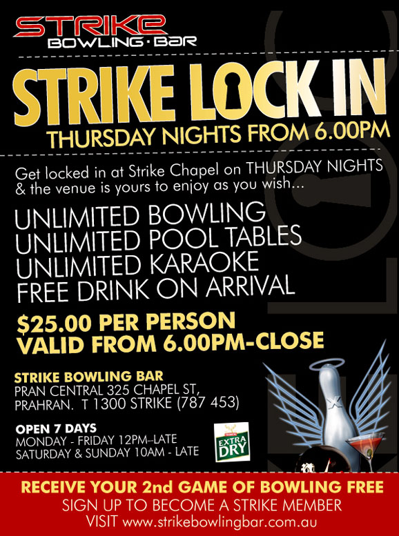 Book now on Ph: 9573 9573. www.strikeonchapel.com. 325 Chapel Street, Prahran