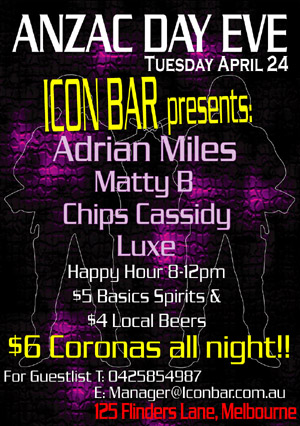 Were running a massive Mayday Party @ FIX, Docklands, on Anzac Day Eve, Tuesday